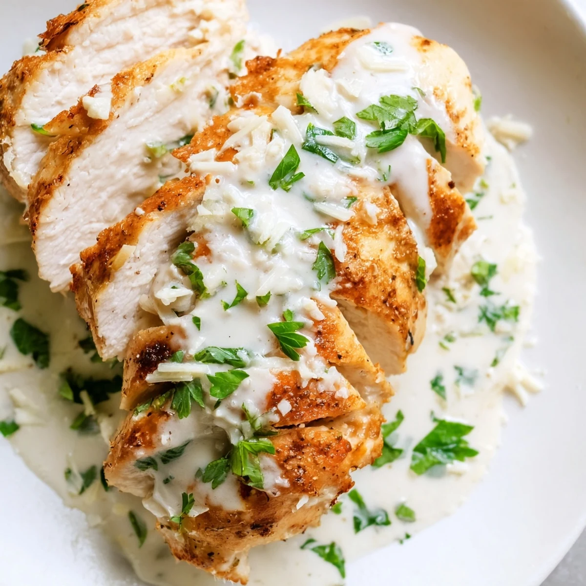 Indulge in tender chicken breasts bathed in a velvety garlic cream sauce enriched with Parmesan. This European-inspired main comes together in just 35 minutes, making it perfect for weeknight dinners or special occasions alike. The golden-seared chicken returns to the skillet to simmer alongside sautéed onions and aromatic garlic, creating a harmonious blend of flavors.