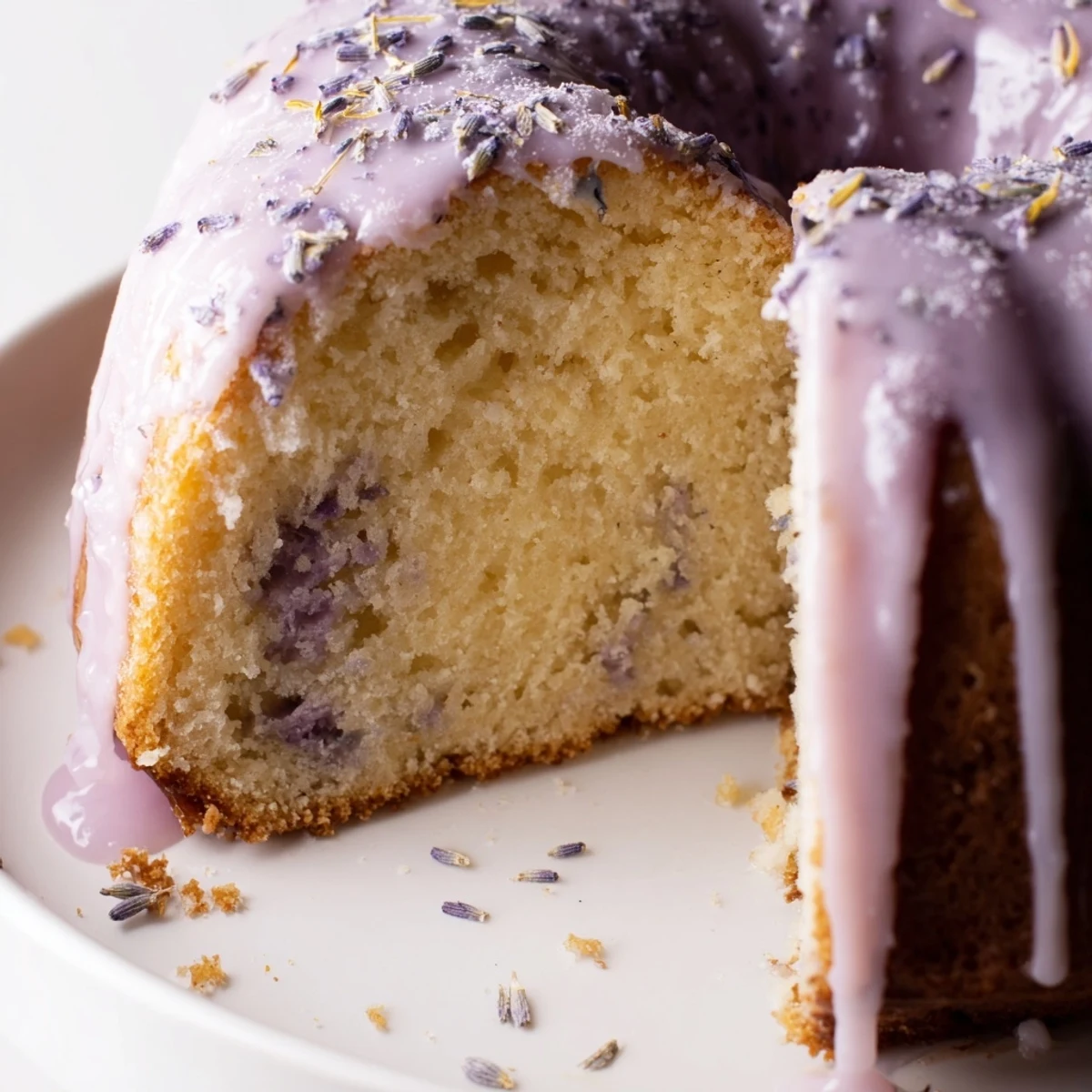 The cake achieves its tender crumb through the classic creaming method, while the optional lavender syrup soak ensures extra moisture and intensified floral notes. The lemon glaze perfectly balances the lavender's sweetness with citrus brightness.